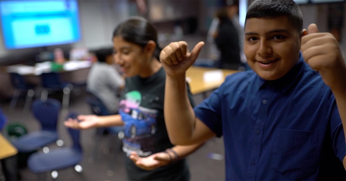 M’s fourth graders were buzzing as they worked in pairs to solve the math problem M. had just presented to them. The other educators in the room circulated and listened in as students used academic language to discuss their answers with each other, jotting down notes about what their partner had said and the language they had used.